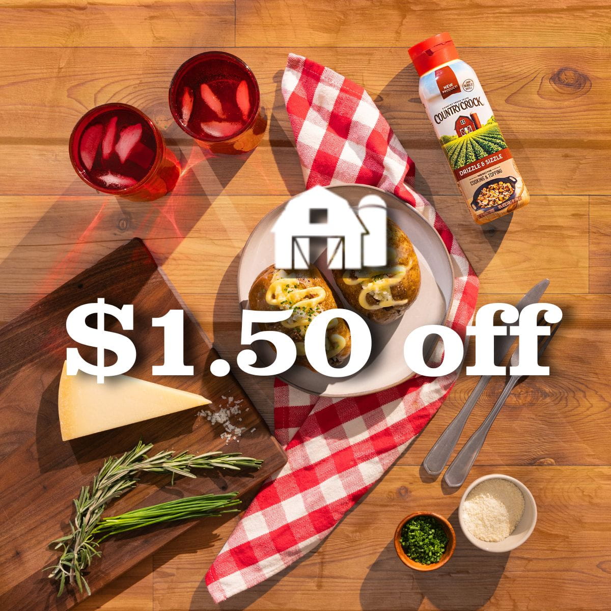 NEW Country Crock® Drizzle & Sizzle brings a great buttery taste from Country Crock in a convenient, squeezable bottle. Perfect for cooking, topping, and spreading – all in one easy-to-use product. Drizzle over veggies or a baked potato. Sizzle in a skillet or on the griddle and more!