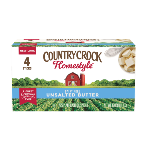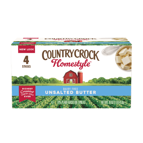 Here at Country Crock®, we take pride in our products being the heart of your rockstar recipes. That’s why we made Country Crock Homestyle™ Dairy Free Butter – Unsalted Sticks, so that you can create homemade dishes the whole family will love. Cook and bake with all the comforts of home, making everyday moments feel richer, fuller, and more flavorful. It’s made for homemade.